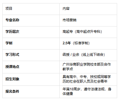 以上就是广州华商职业学院成人高考(高升专)市场营销专业的相关内容,如有其他学历疑问,欢迎免费咨询深大优课在线专业老师!