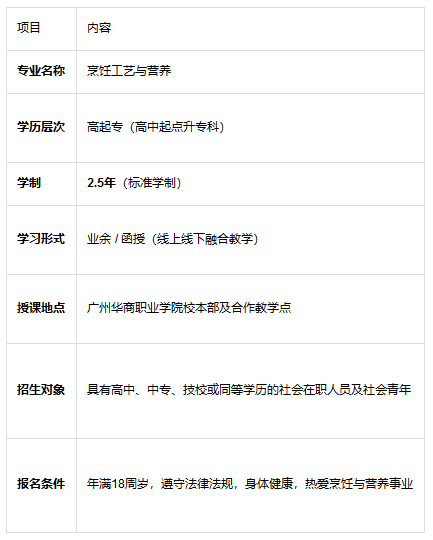 广州华商职业学院成人高考(高升专)【烹饪工艺与营养】专业介绍