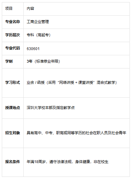 深圳大学成人高考【工商企业管理】专科专业介绍