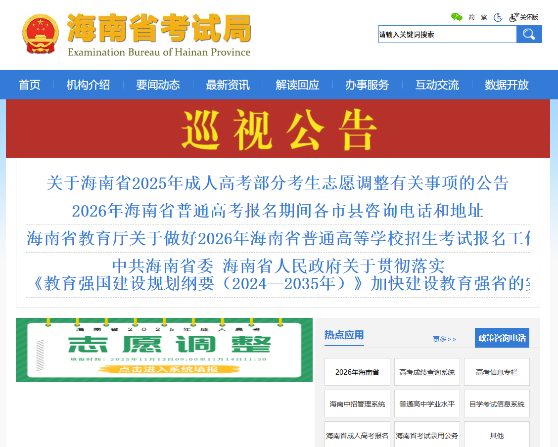 海南成人高考报名有且只有一个官方渠道——海南省考试局官网(http://ea.hainan.gov.cn/),所有报名操作都需通过官网的“成人高考网上报名系统”完成,任何非官方链接或第三方“代报名”都不可信,务必警惕。