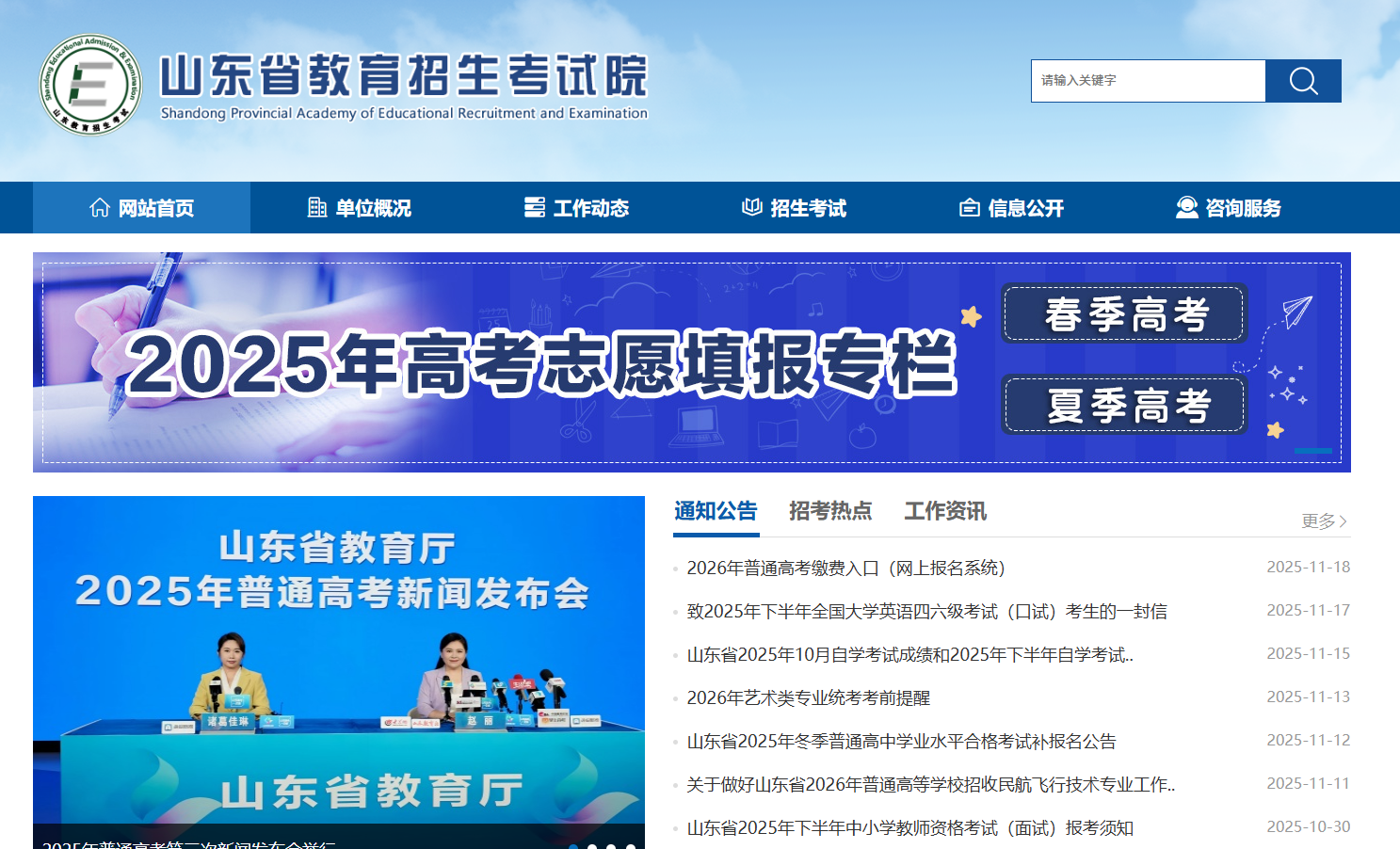 山东成人高考的唯一官方报名入口为山东省教育招生考试院官网。