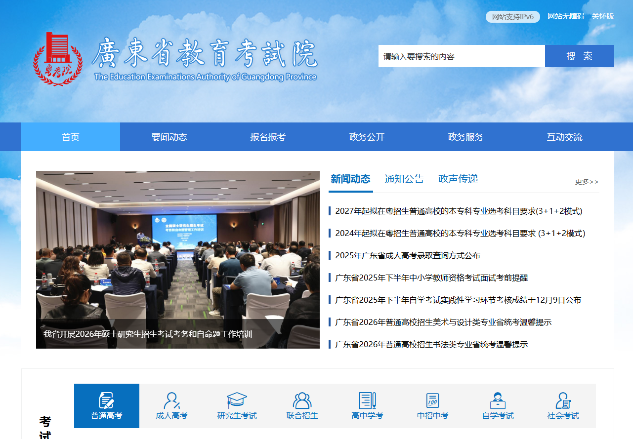 登录“广东省教育考试院”官网(http://eea.gd.gov.cn/),进入成人高考报名系统。