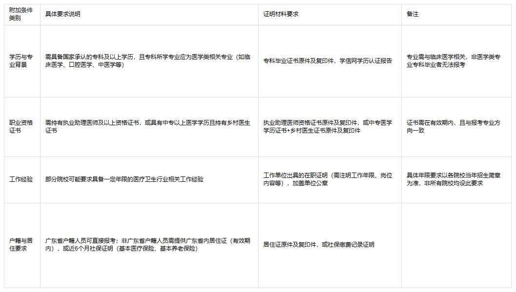 由于临床医学属于医学类专业,报考时还需满足特定的资格与专业背景要求,具体如下表所示: