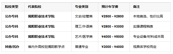 这是揭阳地区最主要的成人高等教育办学点,根据其2025-2026年的收费趋势: