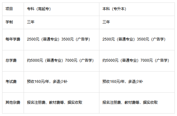 专科与本科的学费标准完全一致,按学年收取,同专业学费无差别。