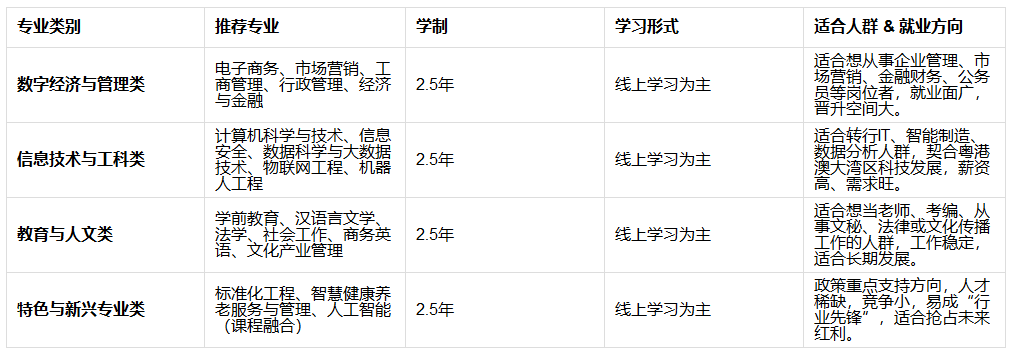 已有专科背景?→ 尽量选择相近专业,可免修部分课程,更快毕业。
