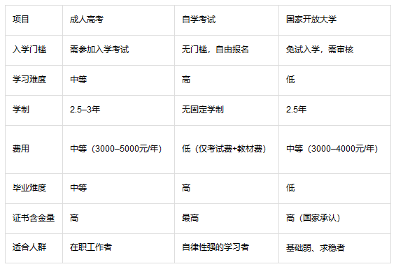 在当今社会,学历已成为职业发展、晋升加薪、考公考编的重要“敲门砖”。对于只有初中学历的朋友来说,提升至大专学历不仅是实现自我突破的关键一步,更是增强职场竞争力的有效途径。那么初中学历怎么考大专证?本文将为您盘点三种适合初中学历者报考大专的正规途径,总有一款适合你!