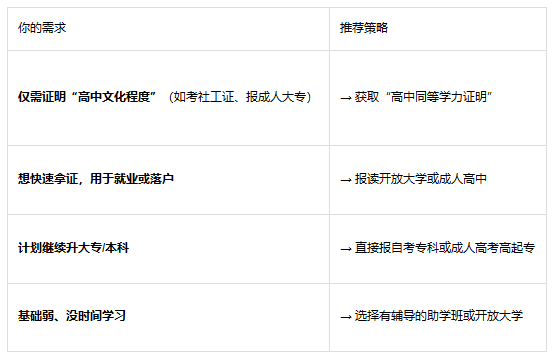 推荐三:基础弱、没信心 → 选“成人高中 + 助学班”