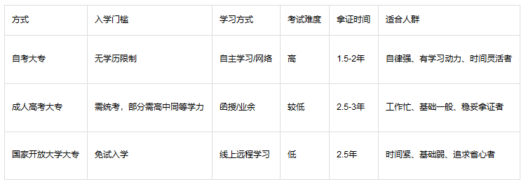 初中文凭怎么成人大专?3种方式总有一款适合你