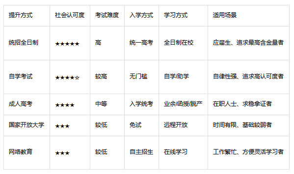 高中学历怎么提升学历含金量最高?权威对比