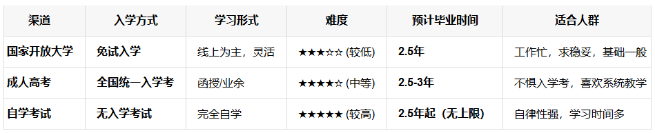 适合人群:追求稳定、便捷,希望稳妥拿到文凭的上班族。