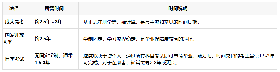 潮州在职读大专需要几年?总的来说,在职读大专的学制通常在 2.5年至3年。以下表格清晰地展示了不同方式所需的时间,我们一起来看看。