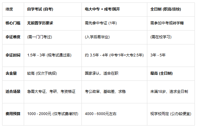 核心逻辑: 先用一年时间拿一个“电大中专”文凭(等同于高中学历),以此作为跳板,再去报考成人高考或国家开放大学的大专。