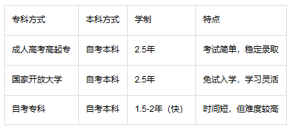 常见形式包括:统招专科、成人高考、国家开放大学、网络教育、自考专科等。
