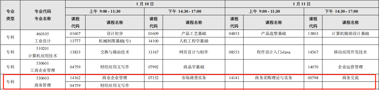 1月属于省内统考,开考科目较少,常见为公共基础课与专业核心课。