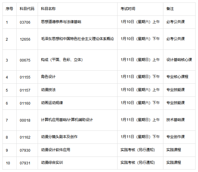 一、2026年1月深圳自考专科动漫设计专业计划表