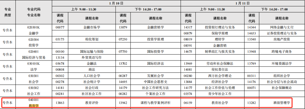 上午 9:00-11:30:00456 教育科学研究方法、00458 中小学教育管理