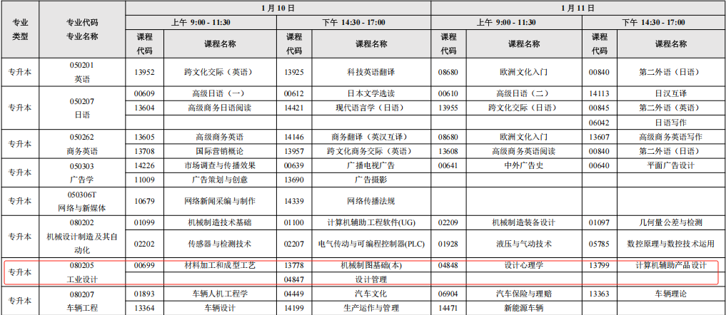 2026年1月深圳自考专升本工业设计专业计划