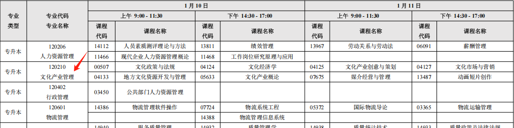 必考课程:中国近现代史纲要、马克思主义基本原理概论、英语(二)、高等数学(二)、管理学原理、文化产业管理概论、文化市场营销、文化政策与法规、文化资源学、文化创意与策划、文化项目管理、文化经纪理论与实务、文化传播学、文化投资与融资、文化品牌管理、文化旅游管理、毕业论文(或毕业设计)。
