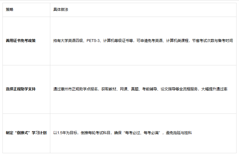操作:惠州自考有“加考”政策。如果你是专科起点报本科,可能需要加考几门科目。确保这些加考科目在第一年就通过,避免后期积压。