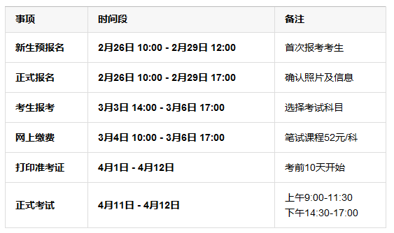 请务必重点关注2月底的报名和3月初的报考,错过将无法补报。
