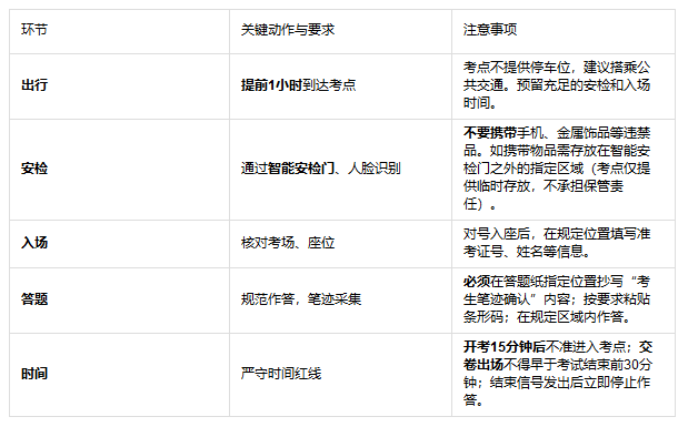 三、 考试当日流程与注意事项(关键环节)