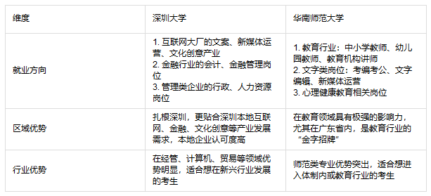 对比总结:深圳大学就业方向更侧重深圳本地的互联网、金融、文化创意等新兴行业,适合想扎根深圳的考生;