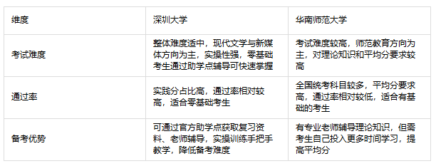对比总结:深圳大学因自考属性和助学点支持,备考难度更低,通过率更高;
