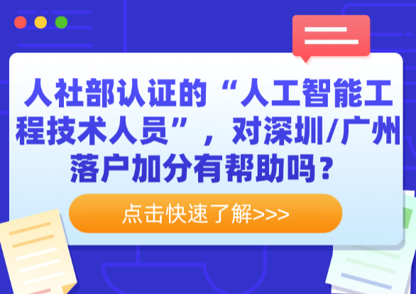 人社部认证的“人工智能工程技术人员”,对深圳/广州落户加分有帮助吗?